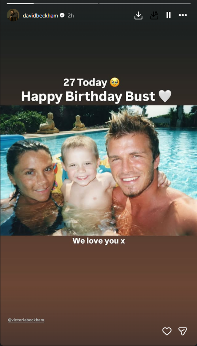 David Beckham, ish-kapiteni i Anglisë, postoi një fotografi nostalgjike ku ai, Brooklyn dhe Victoria shfaqen në një pishinë kur Brooklyn ishte ende fëmijë. Sipas tij, “27 sot. Gëzuar ditëlindjen, Bust. Të duam shumë x”, duke përdorur nofkën e tij të fëmijërisë, “Buster”.