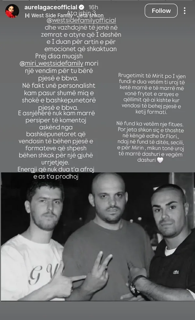 Megjithatë, për Mirin, ajo ka bërë një përjashtim të veçantë, duke rikthyer në vëmendje edhe historinë e “West Side Family” dhe të ndjerin Dr. Flori.