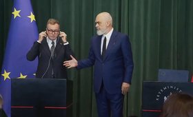 Edi Rama: Përshëndetje, sot me kostum se për pak marrim në dorëzim progres raportin e komisionit për Shqipërinë dhe kemi konferencë.